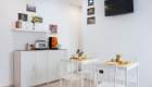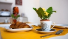 Ceiling fan. Side tables for singles, couples or groups, suitable bot for intimate and family breakfasts. coffee machine for a great Italian coffee or cappuccino, milk kettle, tea or American coffee.